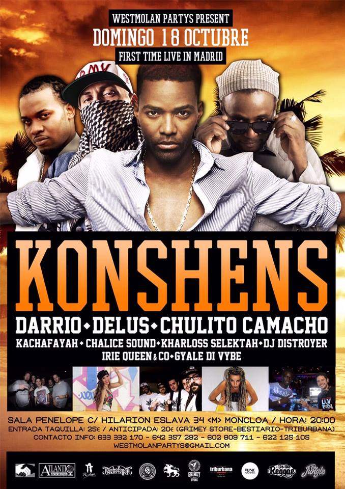 El próximo domingo 18 de octubre hay una cita ineludible en Madrid para todos los amantes de la música jamaicana. Por primera vez, Konshens, uno de los representantes actuales más importantes de la escena reggae dancehall mundial, actuará en la capital española. Será en la Sala Penélope, junto a Darrio y Dj Delus.