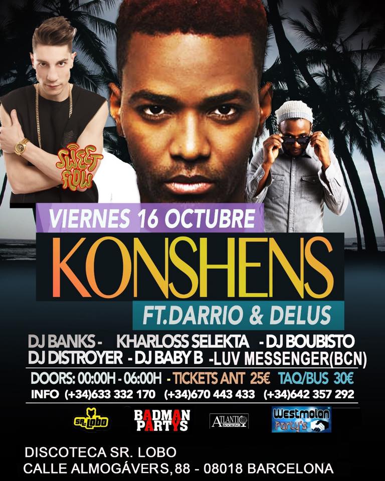El artista jamaicano Konshens actuará en Barcelona el próximo Viernes 16 Octubre, fecha incluída en la gira que hará por el Estado español y organizada por Westmolan Party’s.