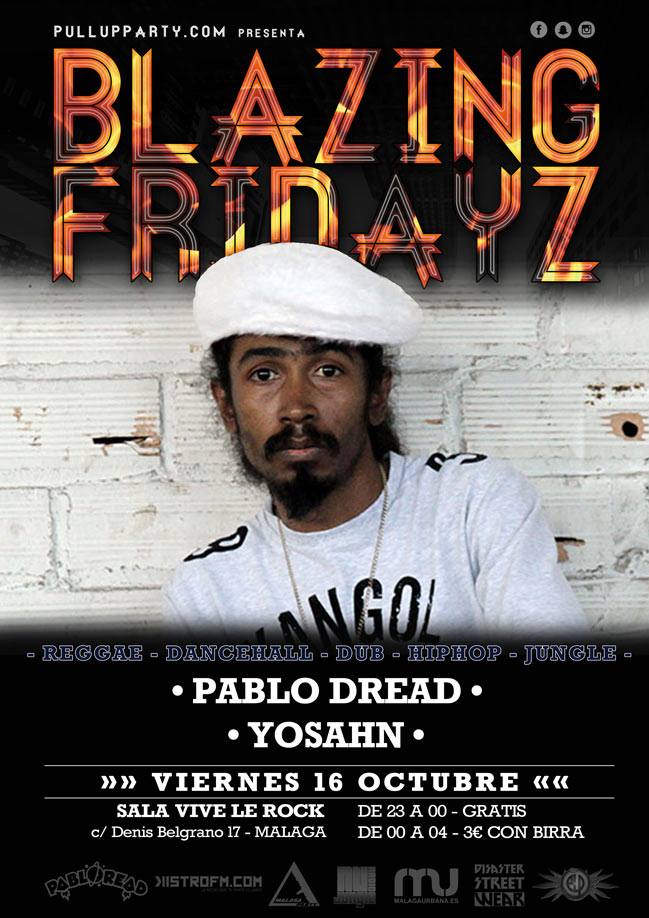 Reggae, dancehall y jungle para el próximo viernes 16 de octubre. Una nueva edición de Blazing Fridayz con Pablo Dread y .