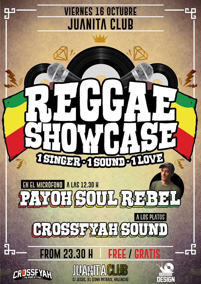 En esta ocasión Crossfyah Sound se encarga de la sesión de Reggae – Dancehall y de poner los Riddims para el gran Payoh SoulRebel que cantará al micro sus lyrics frescas y cargadas de consciencia.