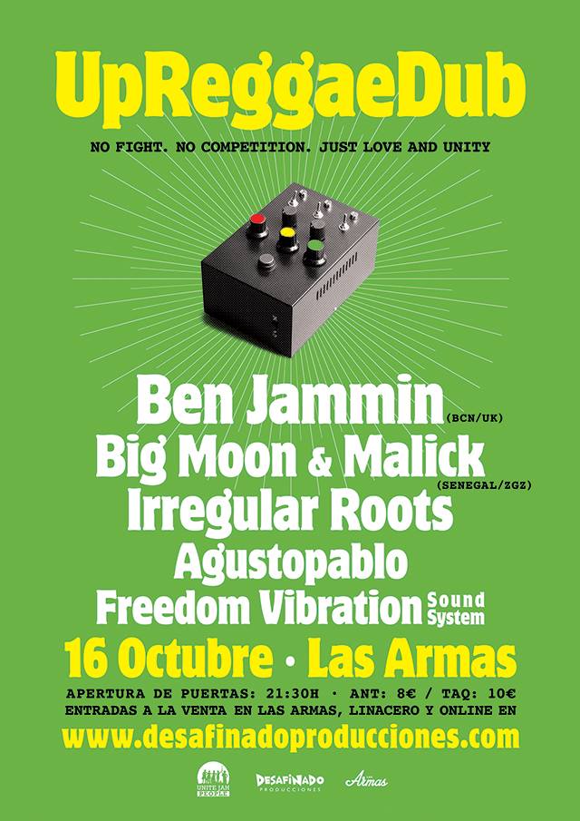 Irregular Roots, Malick y BigMoon, AgustoPablo y Freedom Vibration, cuyo sound system sonará hasta altas horas, completarán el cartel de ésta atractiva noche de reggae.