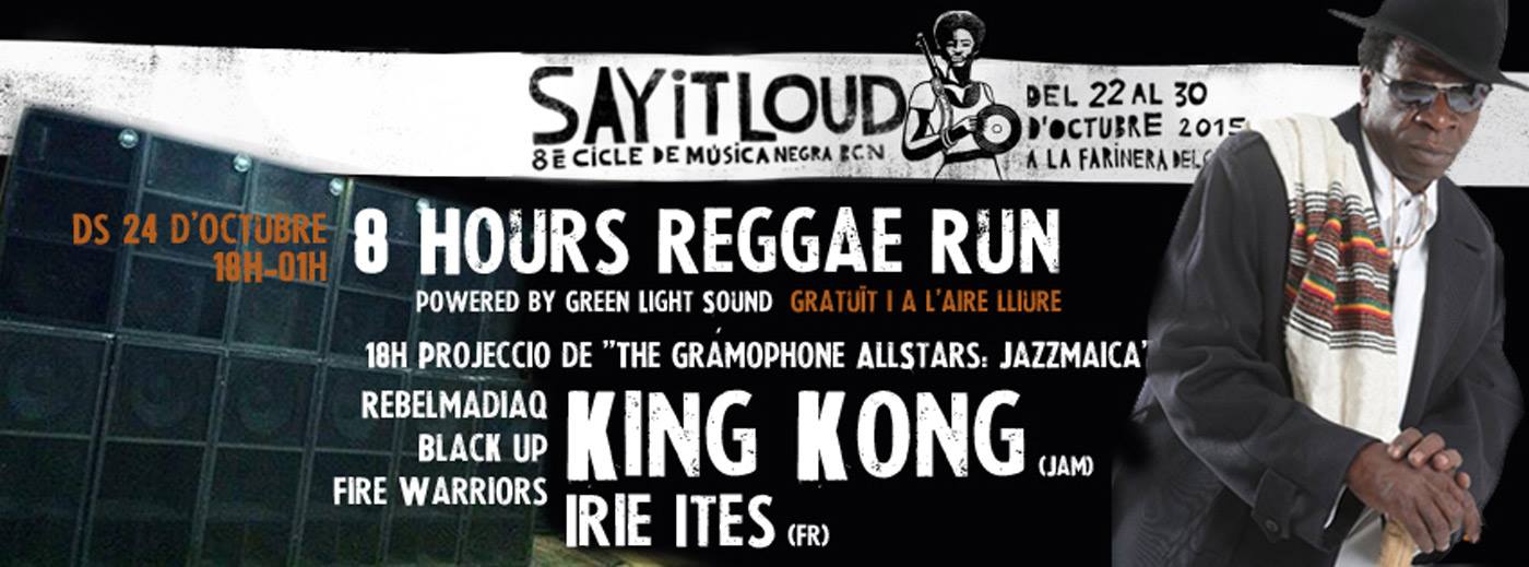 El veterano deejay jamaicano King Kong y el colectivo francés Irie Ites son los artistas internacionales invitados al 8 Hours Reggae Run del Say It Loud, mientras que el sound system barcelonés GreenLight aportará la ingeniería artesanal al evento y una sesión cargada de “dubplates” y “specials”. Completan el cartel las selecciones de Fire Warriors, Black Up y Rebelmadiaq.