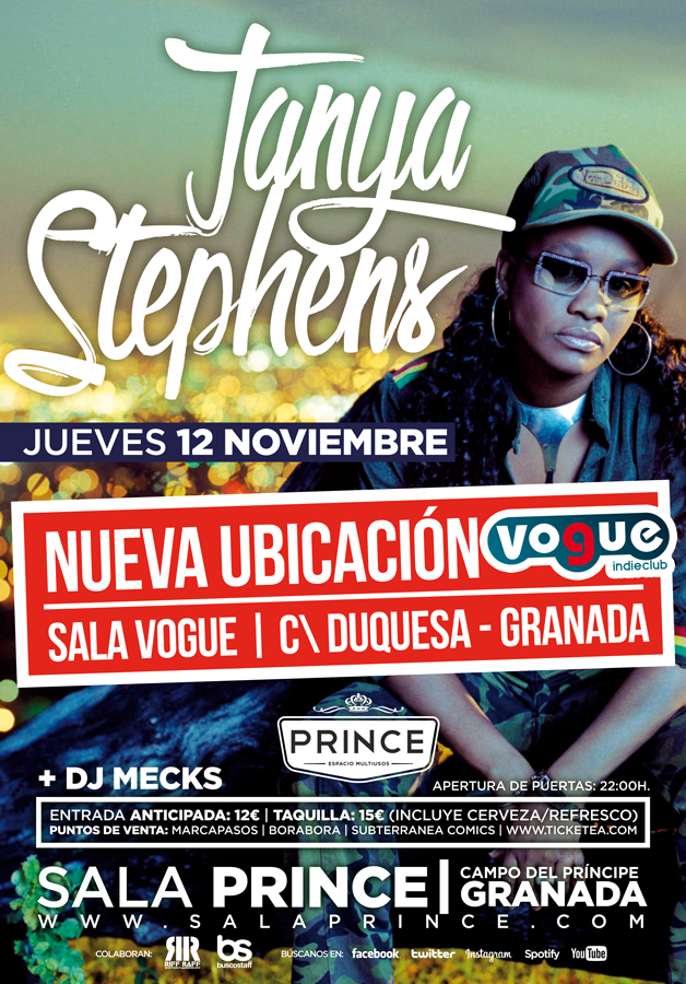 Tanya Stephens cambia de sala. 12 de Noviembre, Sala Vogue (Granada)