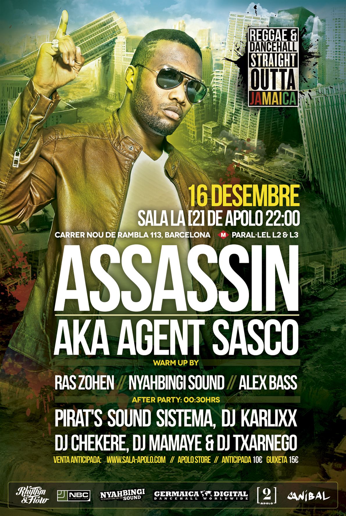 Aterriza por primera vez en la ciudad condal uno de los mayores exponentes del movimiento dancehall-reggae internacional… Directamente desde Jamaica: Agent Sasco aka Assassin! Será el miércoles 16 de diciembre a las 22h en La [2] de Apolo. El warm up irá a cargo de Alex Bass, Ras Zohen y Nyahbingi Sound.