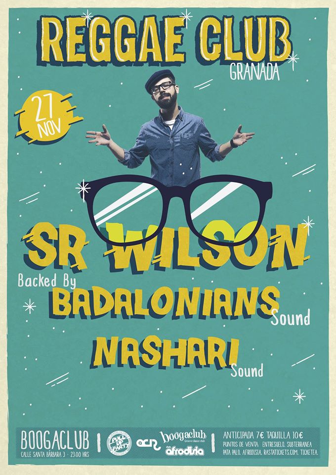 El 27 de Noviembre llega a la sala Boogaclub de Granada una edición especial del Reggae Club con la actuación de Sr. Wilson. El backed correrá a cargo de Badalonians Sound. Además, esa noche estará acompañado de los granadinos Nashari Sound.