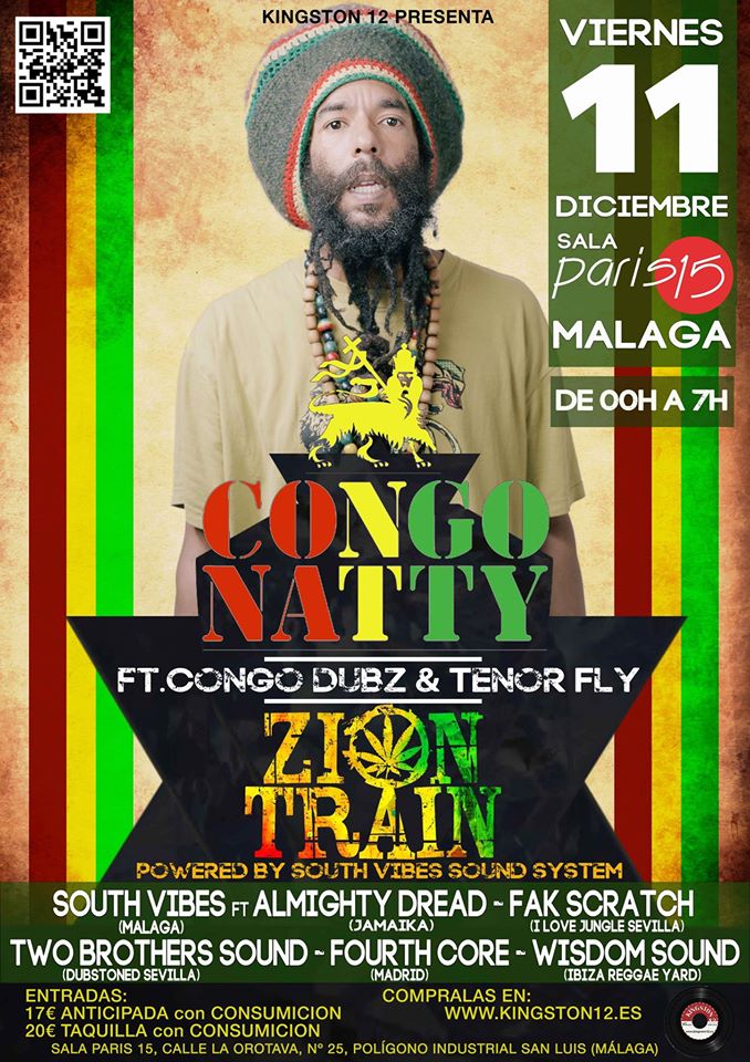 Es un placer anunciar el primer evento y fiesta de presentación del nuevo proyecto reggae en Málaga, Kingston12, quienes para este singular bautismo se traen a nada más y nada menos que Congo Natty, Tenor Fly y Zion Train; tres nombres de lujo que recalan en la ciudad de Málaga por primeras vez compartiendo cartel apoyados por la potencia del Sound System de South Vibes, una fiesta que tendrá lugar el 11 de Diciembre en la Sala París15 de Málaga a las 00h hasta las 7h.