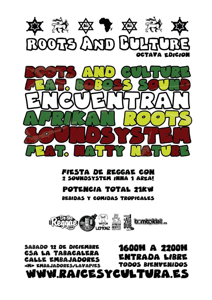 El Sabado 12 de diciembre en CSA La Tabacalera de Madrid, tendremos una tarde de Soundsystem con la 8ª edicieón de Roots & Culture desde las 16:00.