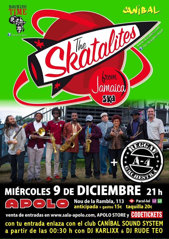 El miércoles 9 de Diciembre de 2015 a partir de las 21:00 en la sala Apolo de Barcelona tendremós la oportunidad de ver a The Skatalites, llegados desde Jamaica en concierto. Disfrutaremos además de el directo de la banda local A4 Reggae Orchestra.