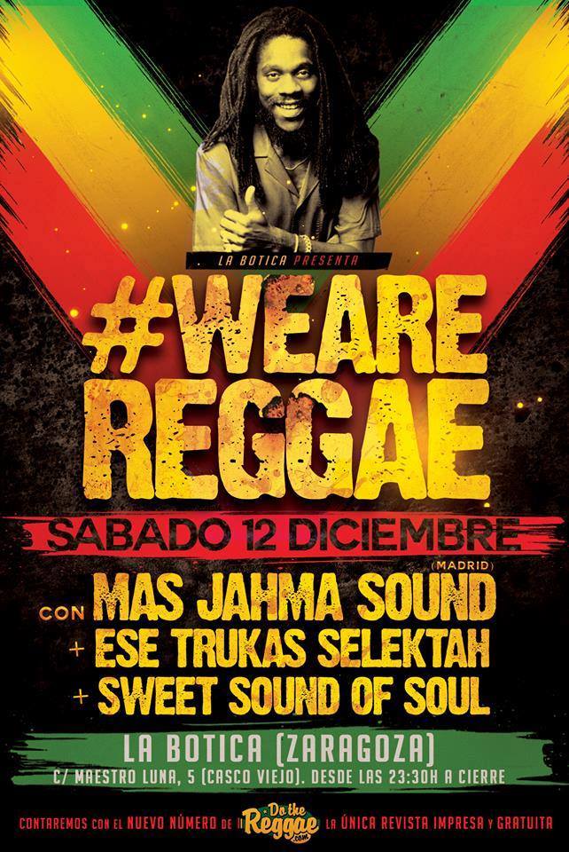 El Sábado 12 de Diciembre visita la Botica de Zaragoza Mas Jahma desde madrid, para la celebración de #We Are Reggae.