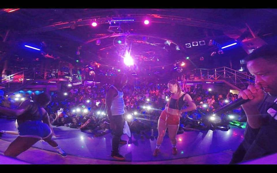 Desde entonces, el show va a la deriva. Es difícil mantener la tensión con el público durante tanto tiempo. Depende de los cambios continuos para recuperar la atención, que se dispersa en peleas estúpidas entre tanta testosterona. Por supuesto casi todos sus hits pasan por la trituradora, las 2 Ligas, “So Special”, “Peppa”, “Boy Like Me”, “High Life” y “Starbwoy”, pero también duras como “Badman Place”, “Up Like 7” y “Last Night” o clásicas como “All dem a Talk”, “Luv me Girl” o “At the Top”. Pero no hay tiempo de engancharse a ninguna, casi ni de reconocerlas, ya no digo de bailarlas. Noto que algo no va bien, cuando conforme avanza el show los ánimos festivos del personal se van difuminando. De hecho, cada vez hay menos gente entregada al show. Cuando el personal baila más con los sounds del warm-up que con el artista estrella, es que el formato no está logrado. Pero el dancehall en directo es lo que es. El baile es lo de menos. Por eso los showcases son tan cortos. Salen de nuevo las Attitude al son de “Come in to my room”, pero no lo enderezan. De hecho, su performance, muy corta, queda muy por debajo de la anterior.