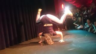 noche y los nervios se hacían notar. En la primera ronda se presentaba cada participante con su propia mix de tunes, y tras salir a la palestra cada una de las dancers, y para sorpresa de gran parte del público no pasaron ni Tooflex ni Maydana. Quedaban 7 participantes y tocaba bailar sobre los temas elegidos por la organización. Esta segunda ronda ponía a prueba las tablas de las participantes en cuánto a reconocer el tema que los selectores les lanzaban y hacer los pasos pertinentes de la canción, y tras dirimir no sin dificultad el resultado, les tocó el turno de no pasar ronda a Lya Bhingi y a Gyale Vybe. En la tercera ronda, con música elegida de nuevo por las concursantes, se notaba que las dancers estaban ya bastante cómodas, y tras un segundo pase individual de Fatu y La Resca a petición del jurado debido a que el nivel estaba bastante equiparado, se quedaron fuera Madgyal y African Gyal Fatu, quedando clasificadas 3 concursantes para la final: La Resca, Saraf y Silvia. Llegado a este punto, las concursantes pusieron toda la carne el asador y el jurado lo pasó bastante mal a la hora de decidir por una de ellas, pidiendo de nuevo un segundo pase decisivo para determinar el galardón que finalmente recayó en Saraf como ganadora, La Resca en segunda posición y Silvia en tercera posición.