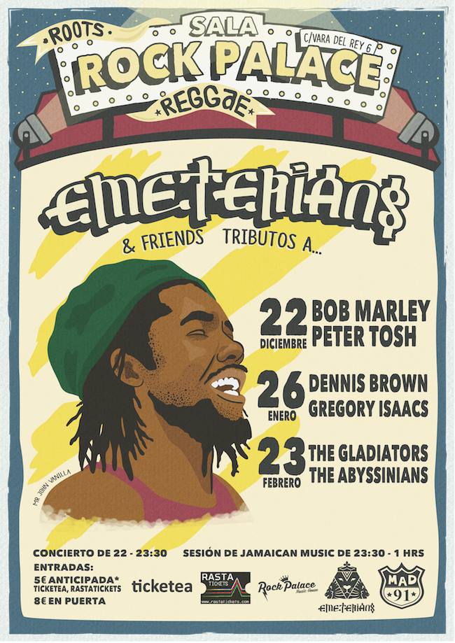 Marley y Peter Tosh serán objeto del primero de estos tributos, le sigue el homenaje a y Gregory Isaacs y a The y The Abyssinians. Esto es algo inédito en nuestro país ya que cuando se piensa en reggae y tributos casi siempre la formula contiene a Marley y excluye al resto. Nos alegramos que se haya planteado un recuerdo a artistas de tanto nivel y tan merecedores como el rey del reggae. Si el tributo corre a cargo de Emeterians, la cosa se vuelve imprescindible.