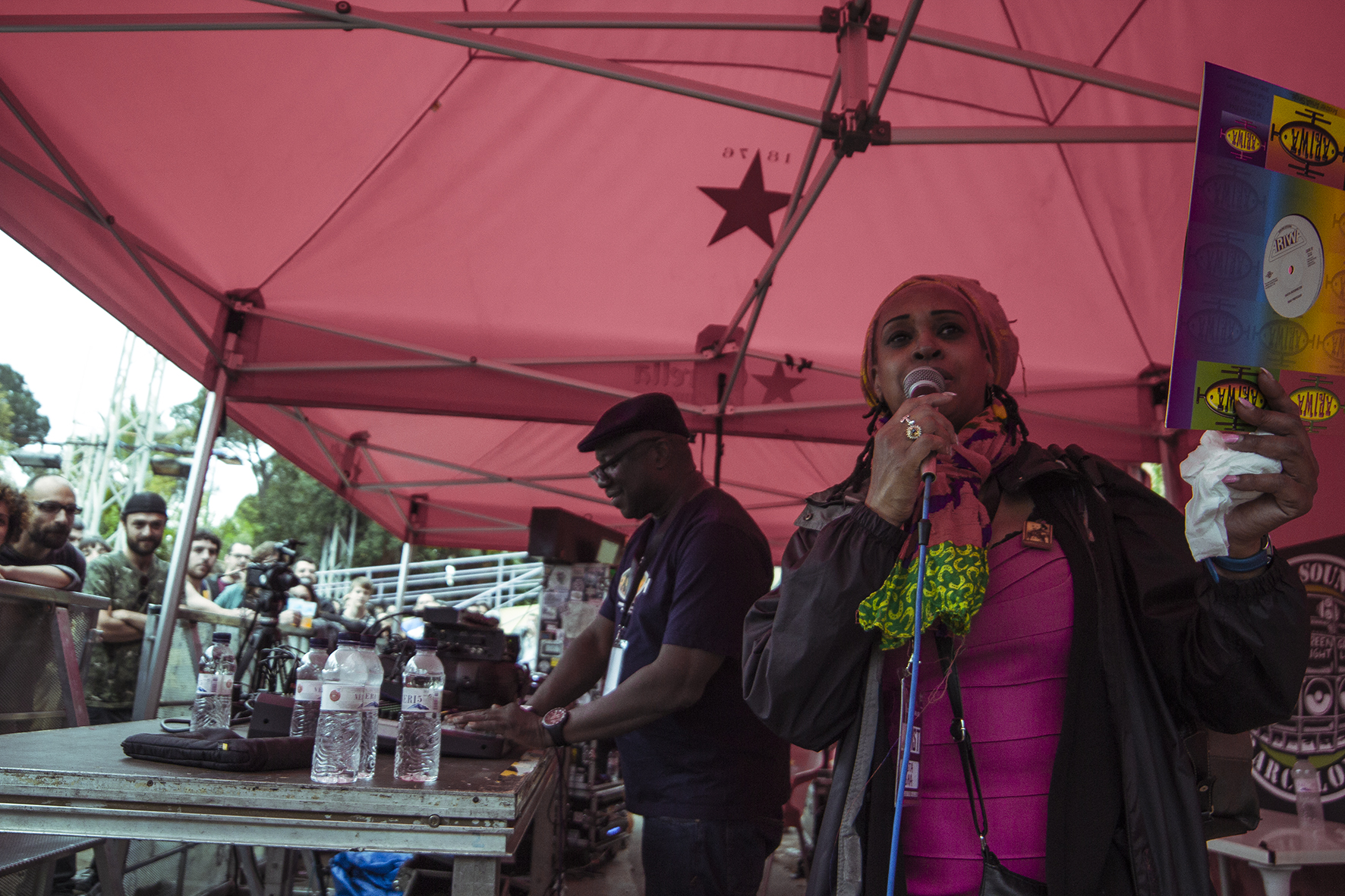 Ingresando al recinto ya teníamos claro el recorrido y dónde debíamos ir, después de saludar a los compas del stand, nos avisaban desde el Back-a-Yard  que Echo Chambers Hi Fi tenia ya su sesión bien iniciada  con una de las voces más talentosas y con más personalidad del panorama: Payoh Soulrebel al micro.